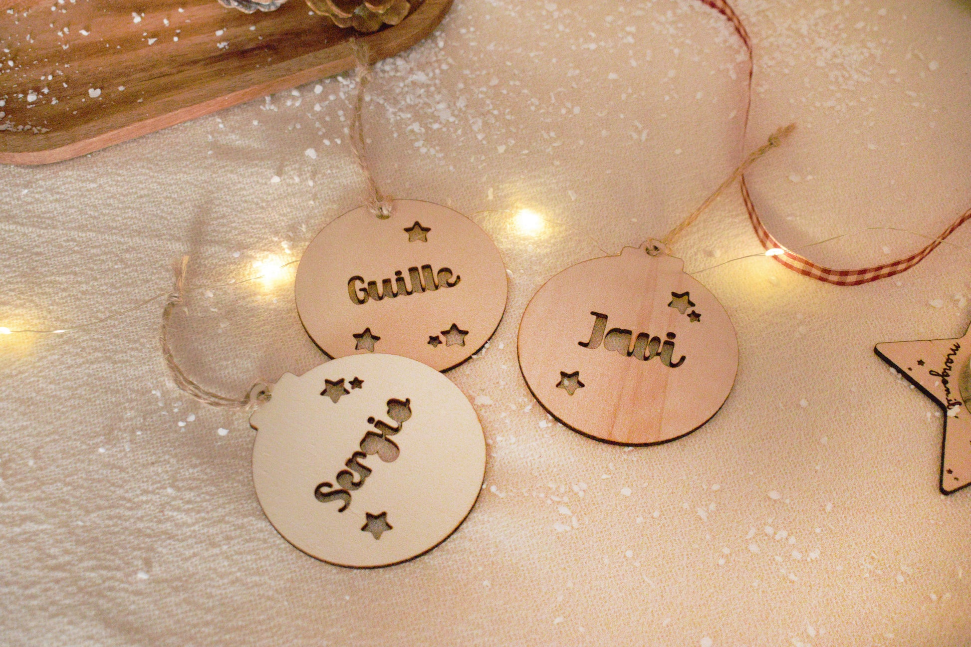 Llena tu Navidad de magia con este adorno de madera calada, decorado con delicadas estrellas. Su diseño ligero y elegante le da un toque especial a tu árbol, y puedes personalizarlo con tu foto o nombre para hacerlo único.