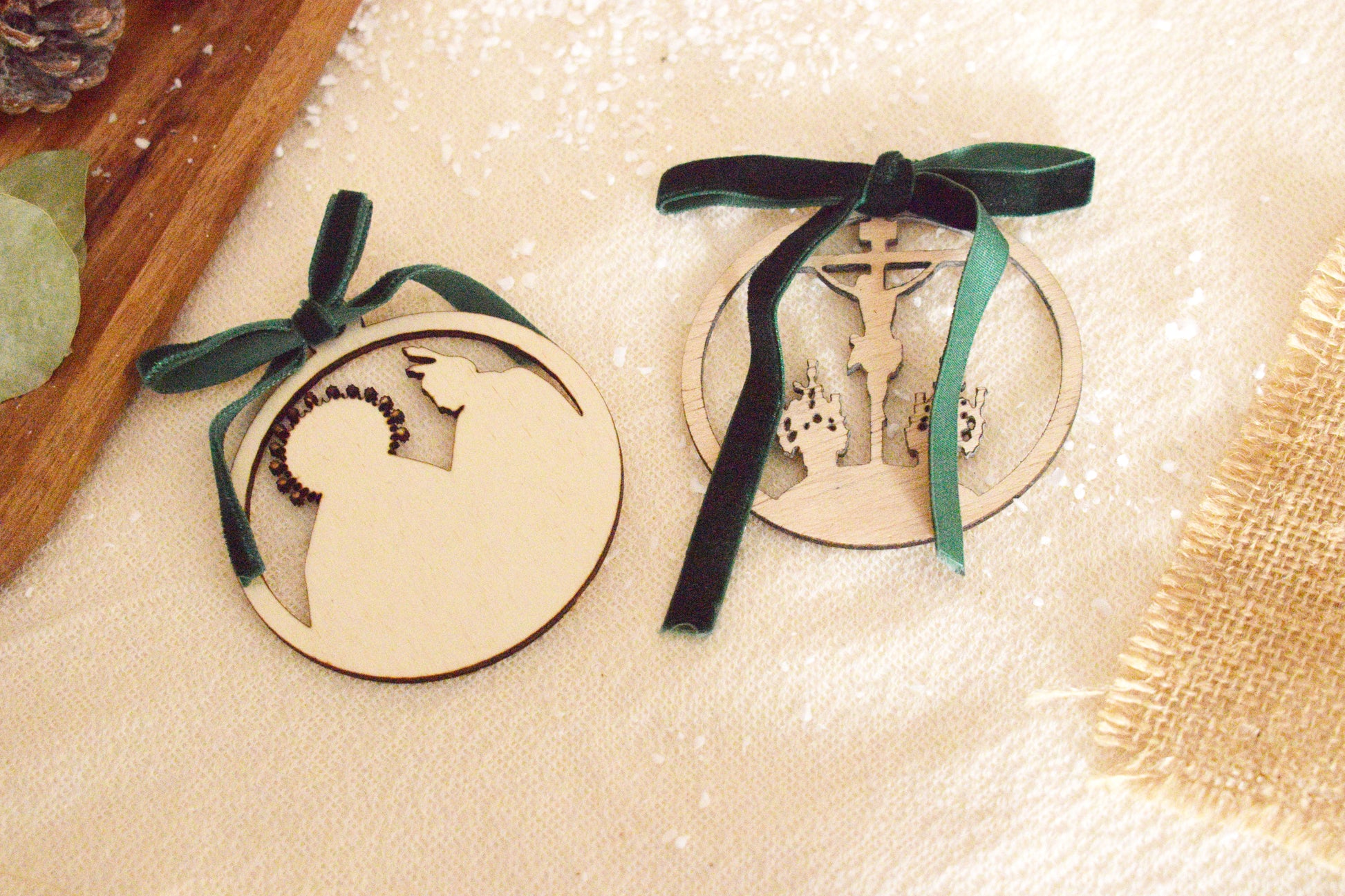 Honra tu devoción con este adorno cofrade de madera, perfecto para colgar en tu árbol o decorar un rincón especial. Personalízalo con el nombre de tu hermandad o un detalle significativo.