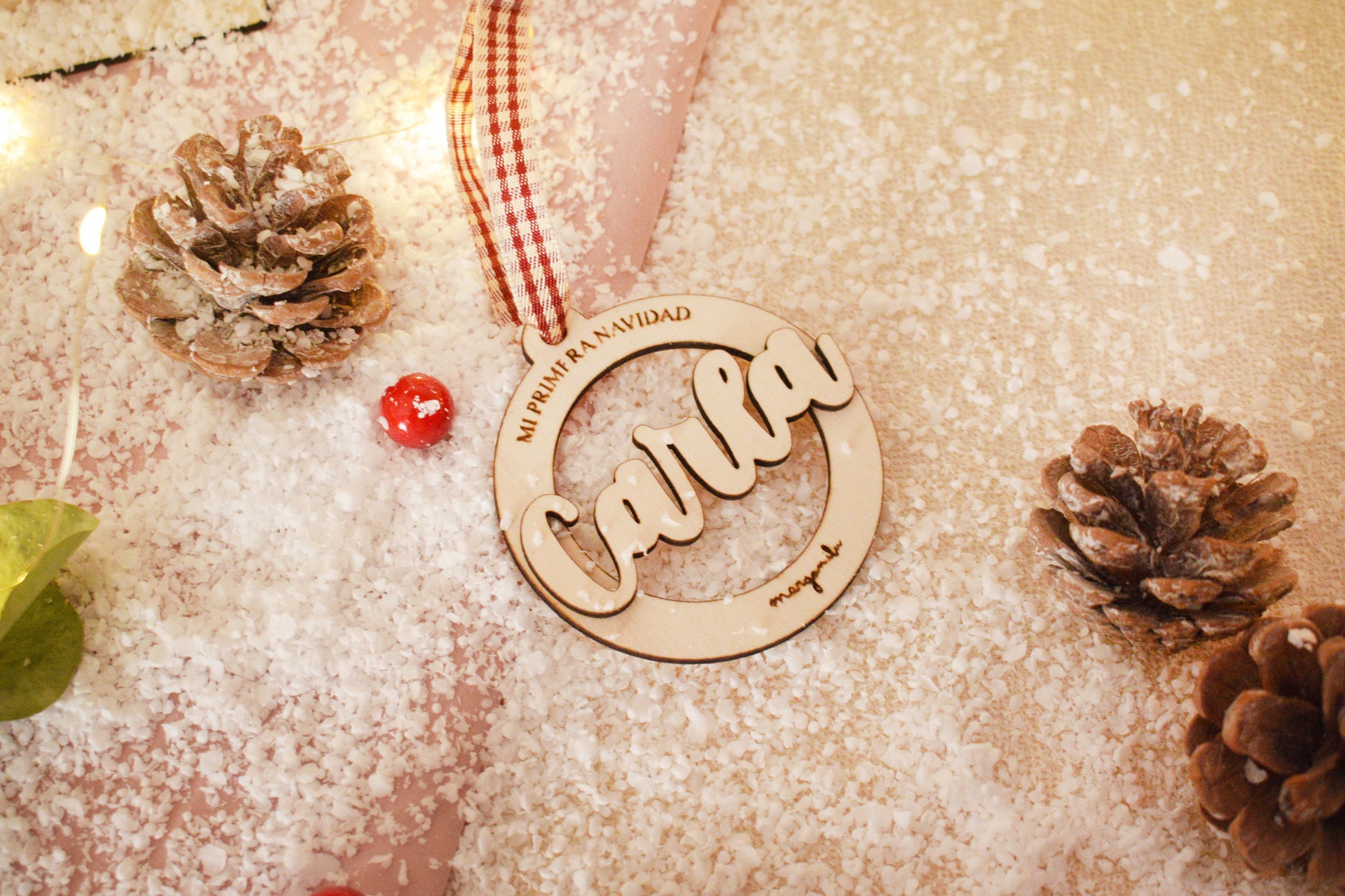 Celebra la primera Navidad de tu pequeño con este adorno de madera personalizado. Graba su nombre y convierte este recuerdo en un detalle único que podréis colgar en el árbol y conservar para siempre.