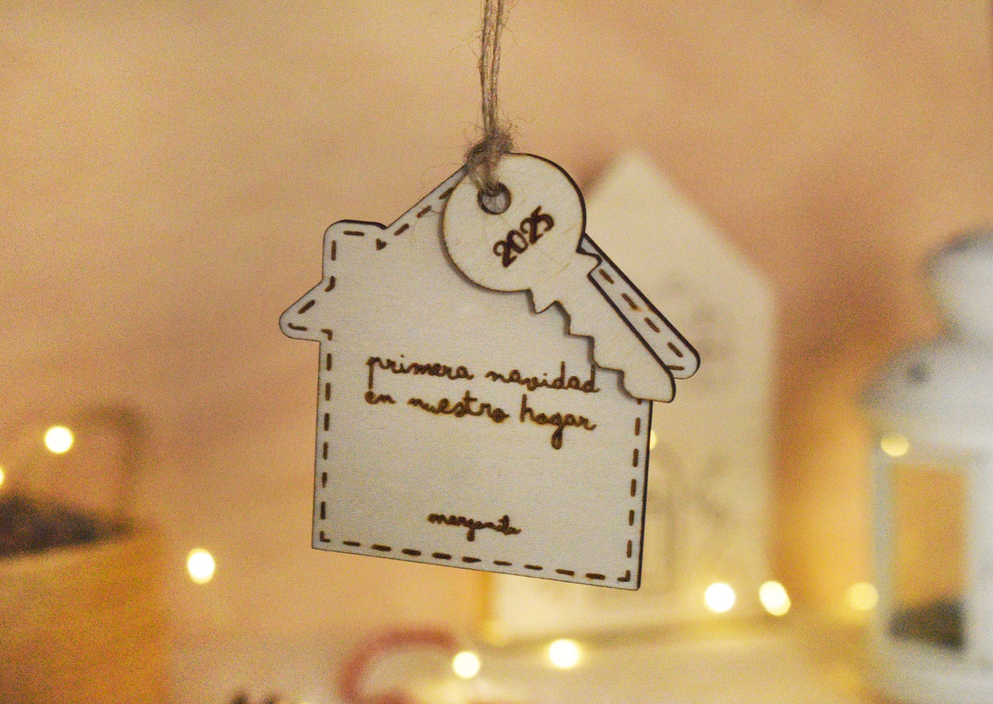 Esta adorable casita de madera con llave simboliza la bienvenida y los momentos compartidos. Personalízala con la foto o el nombre que quieras y crea un recuerdo único para tu árbol o rincón favorito.