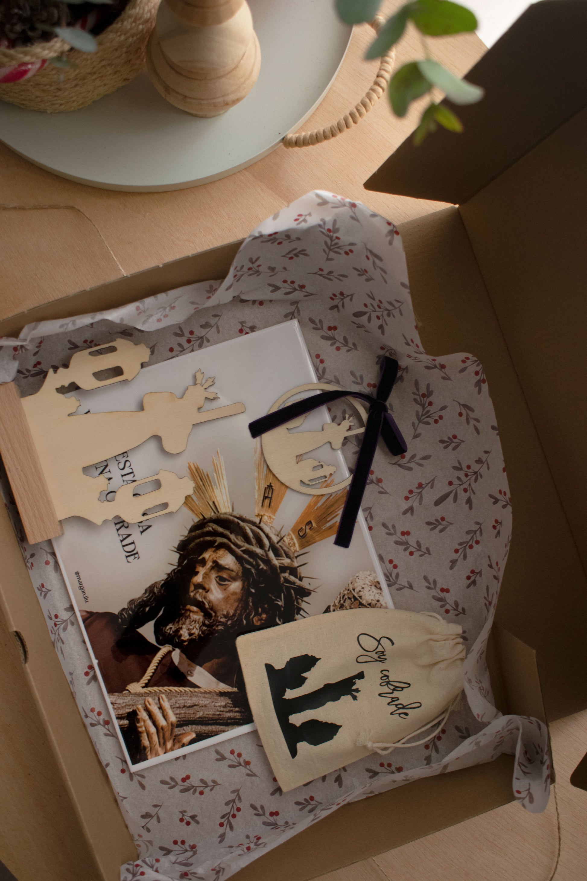 Un regalo pensado para los amantes de la Semana Santa y la tradición. Este kit incluye un saquito de incienso con muestra, un azulejo decorativo, una bola cofrade de la hermandad a elegir y una silueta de la hermandad a elegir, para que cada detalle refleje la devoción y el cariño que sientes por estas raíces. Ideal para emocionar y crear un recuerdo especial que acompañe todo el año.