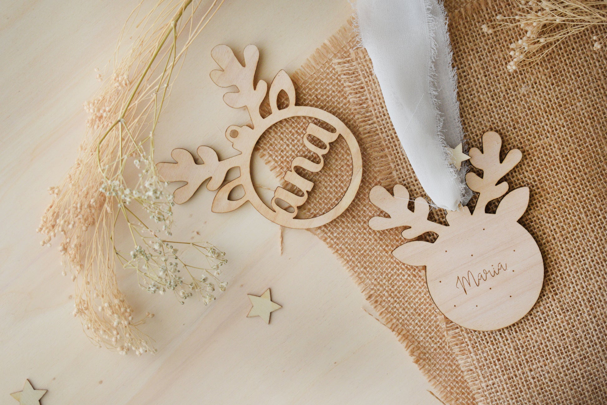 Haz que tu Navidad sea divertida y cálida con este reno de madera personalizado. Graba el nombre que quieras y conviértelo en un adorno único para tu árbol o para regalar.